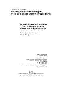 Andrea Pilotti et Oscar Mazzoleni (2014), Il voto ticinese sull’iniziativa ‘contro l’immigrazione di massa’ del 9 febbraio 2014, Travaux de science politique, No 61, Lausanne, Université de Lausanne.